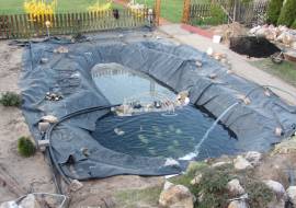 Tófelújítás 10m3-ről 30m3-re japánkert stílusban, forrással és szűrőrendszerrel