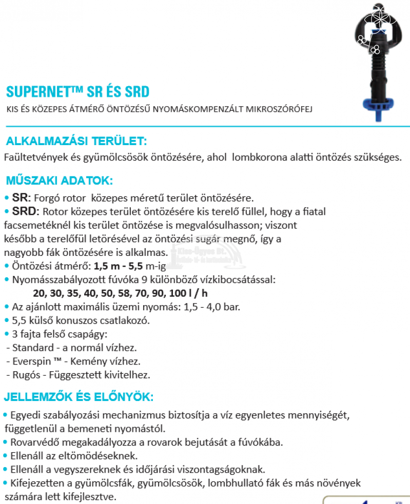 Netafim SuperNet Jet (álló) mikroszóró fej, bármelyik jet rotor, fúvóka és ház