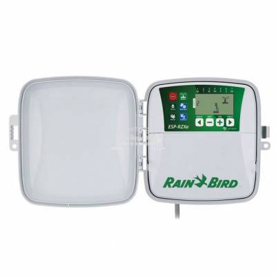 A Rain Bird ESP-RZXe sorozatú vezérlők beltéri vagy kültéri zóna alapú vezérlő LNK WiFi kompatibilitással  Az ESP-RZXe vezérlő zónaalapú beállítást biztosít, amelyet a képzetlen felhasználók könnyebben érthetnek. Fix 4, 6 és 8 zónás modellek állnak rendelkezésre. Az ESP-RZXe rugalmas ütemezési funkciókat kínál, amelyek a vezérlőt ideálissá teszik a legkülönbözőbb alkalmazásokhoz, beleértve a lakossági és a könnyű kereskedelmi öntözőrendszereket is. Könnyen kezelhető Az ESP-RZXe vezérlőt a könnyű használat szem előtt tartásával tervezték. A zóna alapú ütemezés lehetővé teszi minden szelep önálló ütemezését; nincs több magyarázat a „programokra” a végfelhasználók számára, gyakorlatilag kiküszöbölve a visszahívásokat. A nagyméretű LCD kijelző az összes zóna összes programozását egyszerre mutatja. Az egyszerű grafikus alapú felhasználói felület könnyen elmagyarázható, és minden vezérlőfunkciót kéznél mutat. LNK WiFi kész A Rain Bird LNK WiFi moduljával (külön megvásárolható) kombinálva, internetalapú időjárási adatokat kaphat, amelyek napi rendszerességgel módosítják az öntözési ütemterveket, akár 30% -os vízmegtakarítás érdekében.