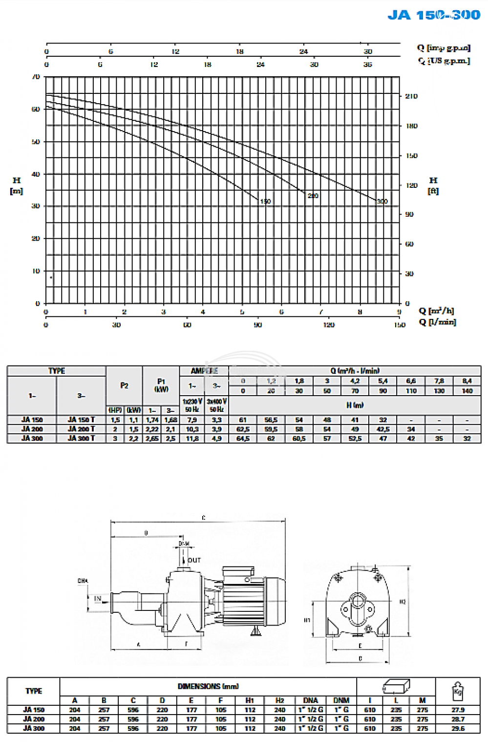 Foras JA 300 M önfelszívó, gázleválasztós, dupla járókerekes, JET szivattyú