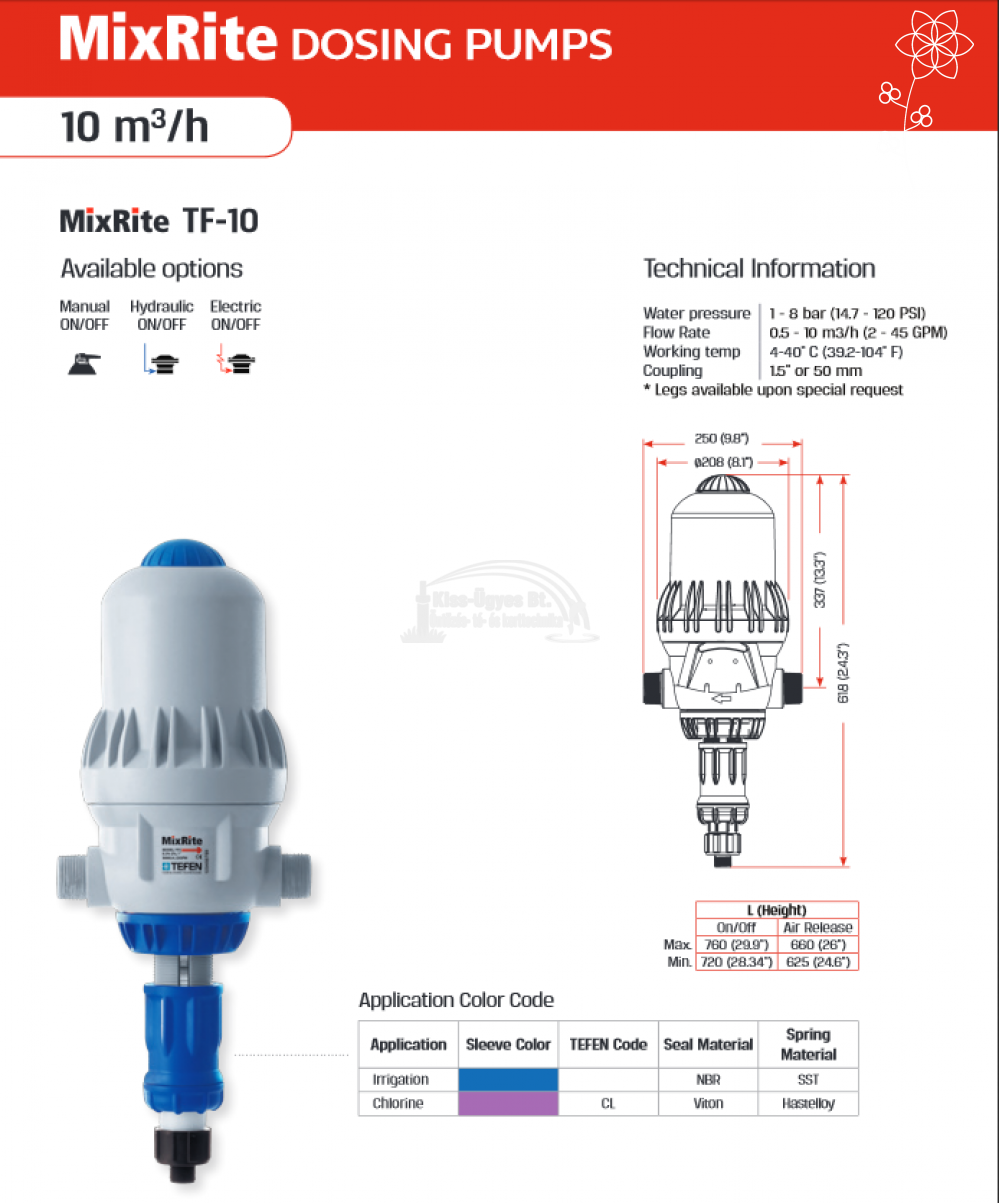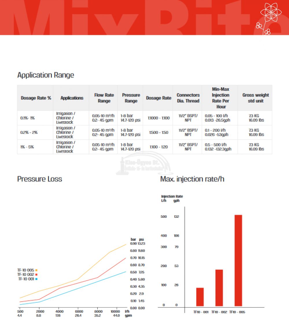 Tefen MixRite TF-10 tápoldatozó készülék, 0,5-10 m3/h, 0,2-2 %, 6/4" KK