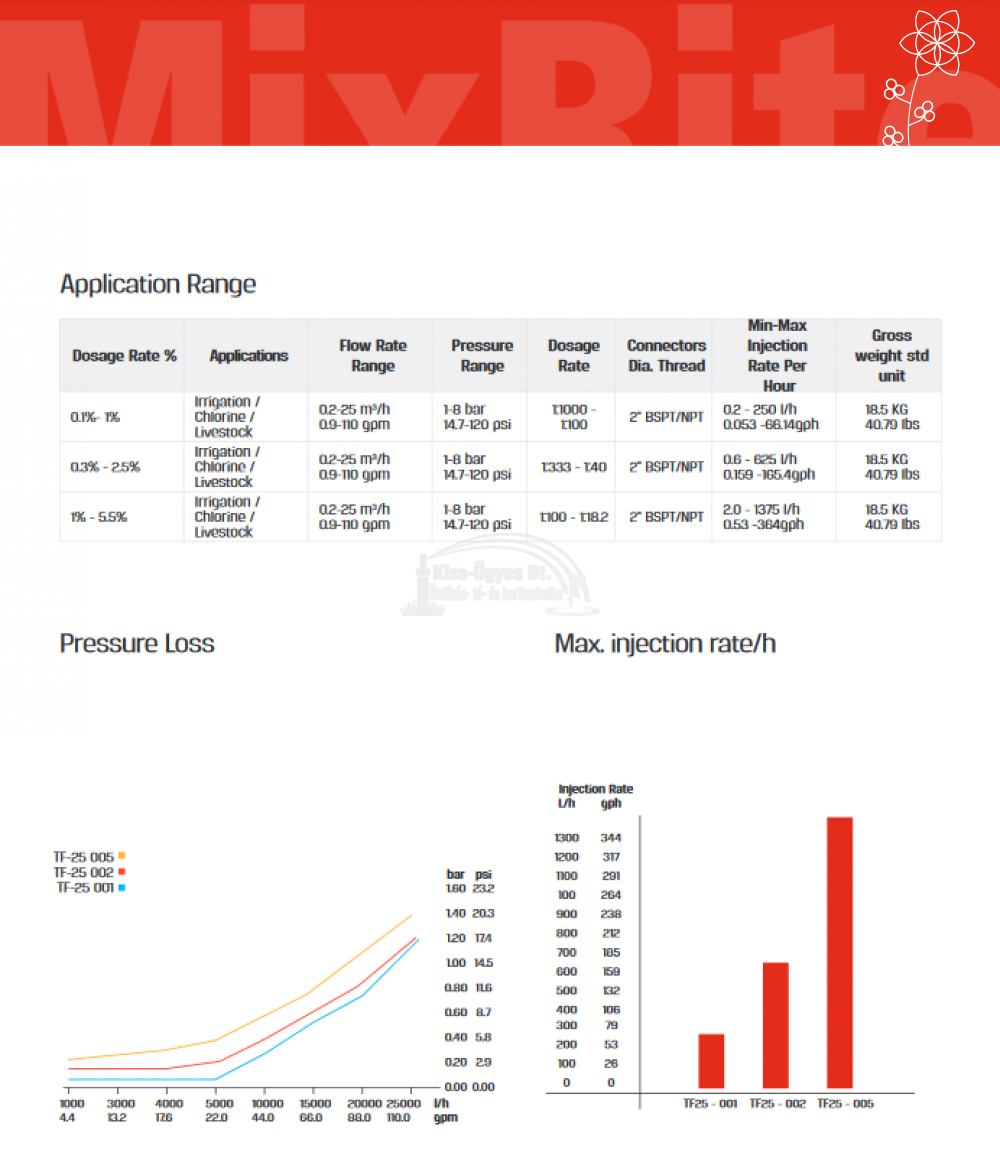Tefen MixRite TF-25 tápoldatozó készülék, 2-25 m3/h, 0,3-2 %, 2" KK