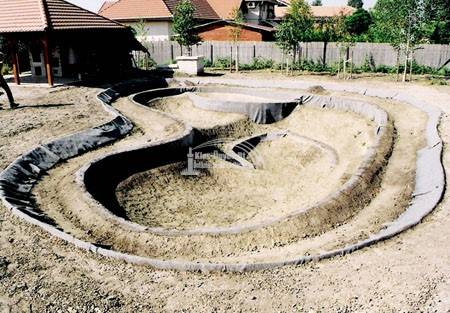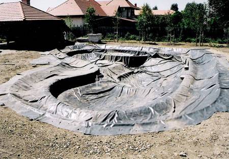 Először gondoljuk ki milyen formát szeretnénk. Ezt követően jelöljük ki az elképzelt formát a kiválasztott helyen és ássuk ki a medret. Ha a talajban sok a gyökér, ill. éles törmelék, béleljük a medret geotextíliával a fóliázás előtt. Ha köveket, kavicsokat szeretnénk tenni a fóliára, akkor a tófólia és a kövek közé is geotextíliát kell tenni. Fontos megjegyezni, hogy a 200gr./m2 alatti geotextíliák hiába olcsók, nem sokat érnek, nem védik megfelelően a fóliát.