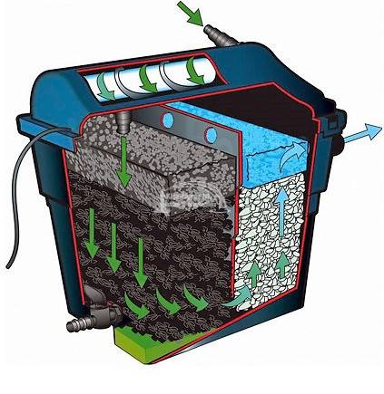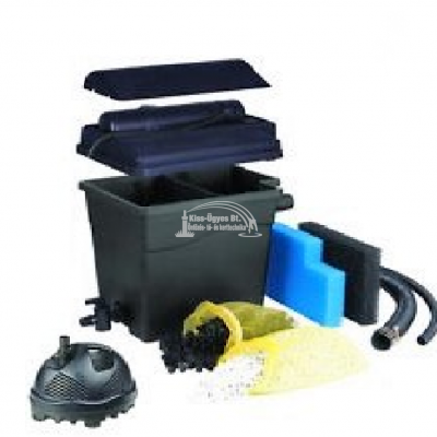 Ubbink FiltraClear 4500 Plus Set. Átfolyós tavi szűrő szett, 5 W UV-C szűrővel, Elimax 1000 szűrőtápláló szivattyúval. Átfolyós vagy más néven gravitációs szűrő 5W-os UV-C lámpával lebegő algák ellen, 1.200L/h szűrőtápláló szivattyúval, tömlővel és csatlakozókkal. Halasítás nélkül 4.500L-es, halasítva ~ 3.000L-es tavakig ajánlott, halmennyiség függvényében. Két kamrás szűrő: UV-C blokk lebegő algák ellen, szűrő filterek a fizikai szennyeződések ellen, lávakő a biológiai szűréshez.