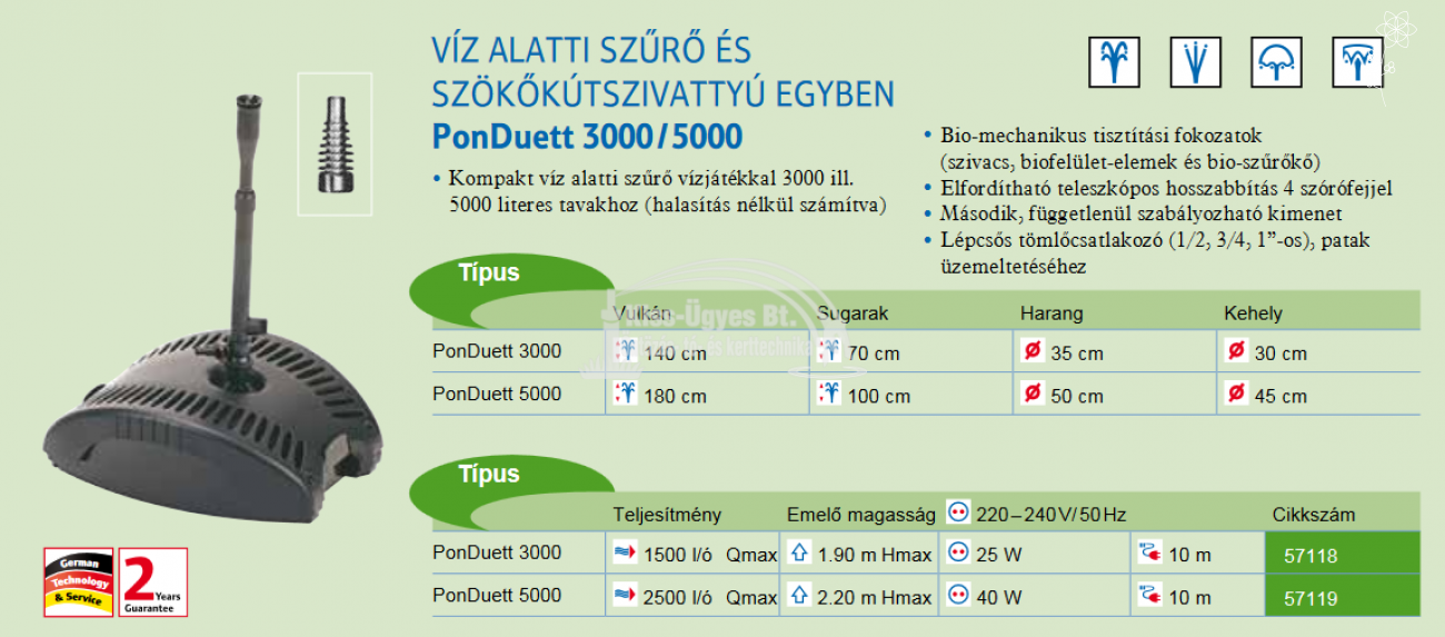 Pontec PonDuett 3000 prémium szökőkút szivattyú, 1500L/h ( 2 év garancia )