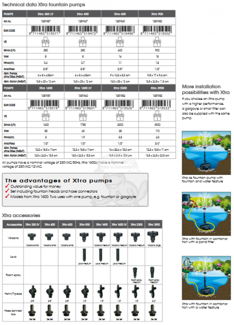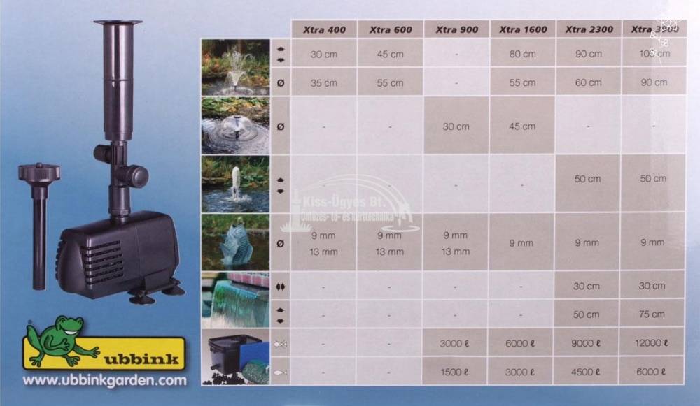 Ubbink Xtra 600 l/h szökőkút szivattyú, 1 szórófejjel ( 2 év garancia)