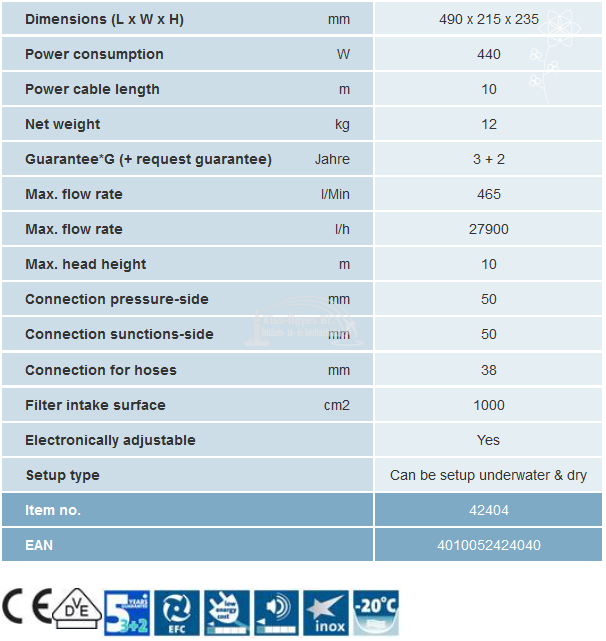 Oase Aquarius Eco Expert 28000 vízesés és szökőkút szivattyú, fordulatszabályzási lehetőséggel, SFC és okos DMX-RDM lehetőség, 27.900L/h