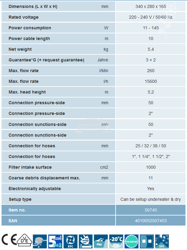 Oase AquaMax Eco Prémium 16000 szűrőtápláló és patak szivattyú, fordulatszabályzási lehetőséggel, 2 szívócsonkkal, 15.600L/h