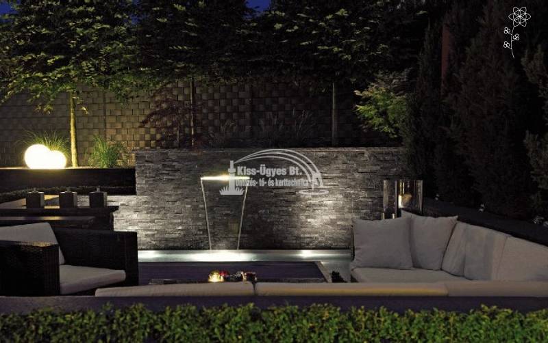 Ubbink Niagara 60 LED vízesés, 60 cm széles, anyaga inox, 35 LED-del. A LED fénysor által este is kiemelkedő látványt biztosít a vízesésnek a kertben, vagy teraszon. 1" -os belsőmenetes bekötési lehetőség a tartály alján és hátulján. A méretezést a lentebbi ábrán találja. Ezen felül néhány ötlet képekben az alkalmazáshoz.