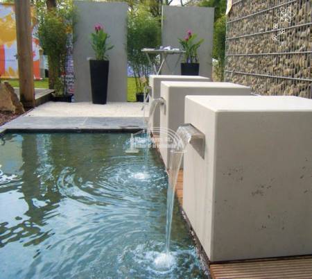Ubbink Niagara 30 vízeséselem, 30 cm széles, anyaga inox. 1" -os belsőmenetes bekötési lehetőség a tartály alján és hátulján. A méretezést a lentebbi ábrán találja. Ezen felül néhány ötlet képekben az alkalmazáshoz.